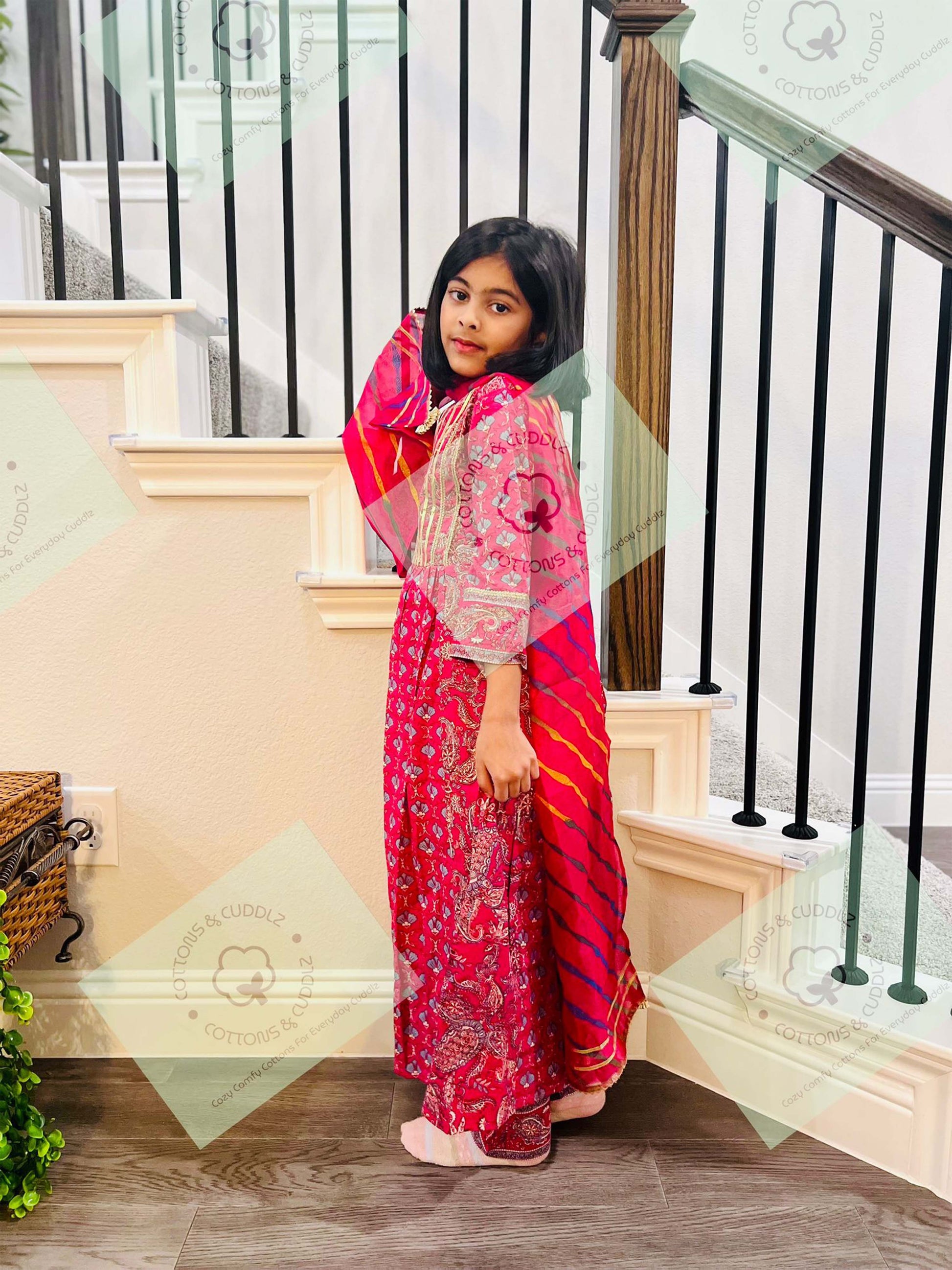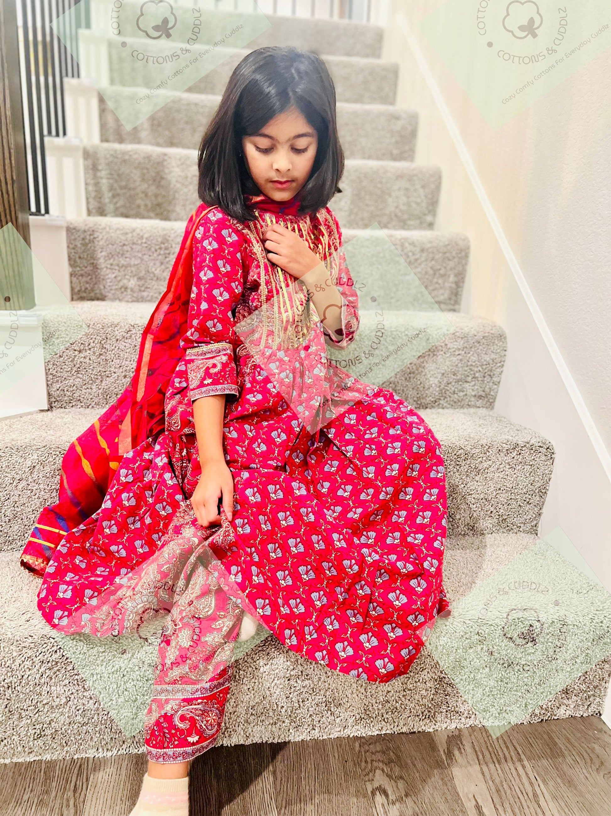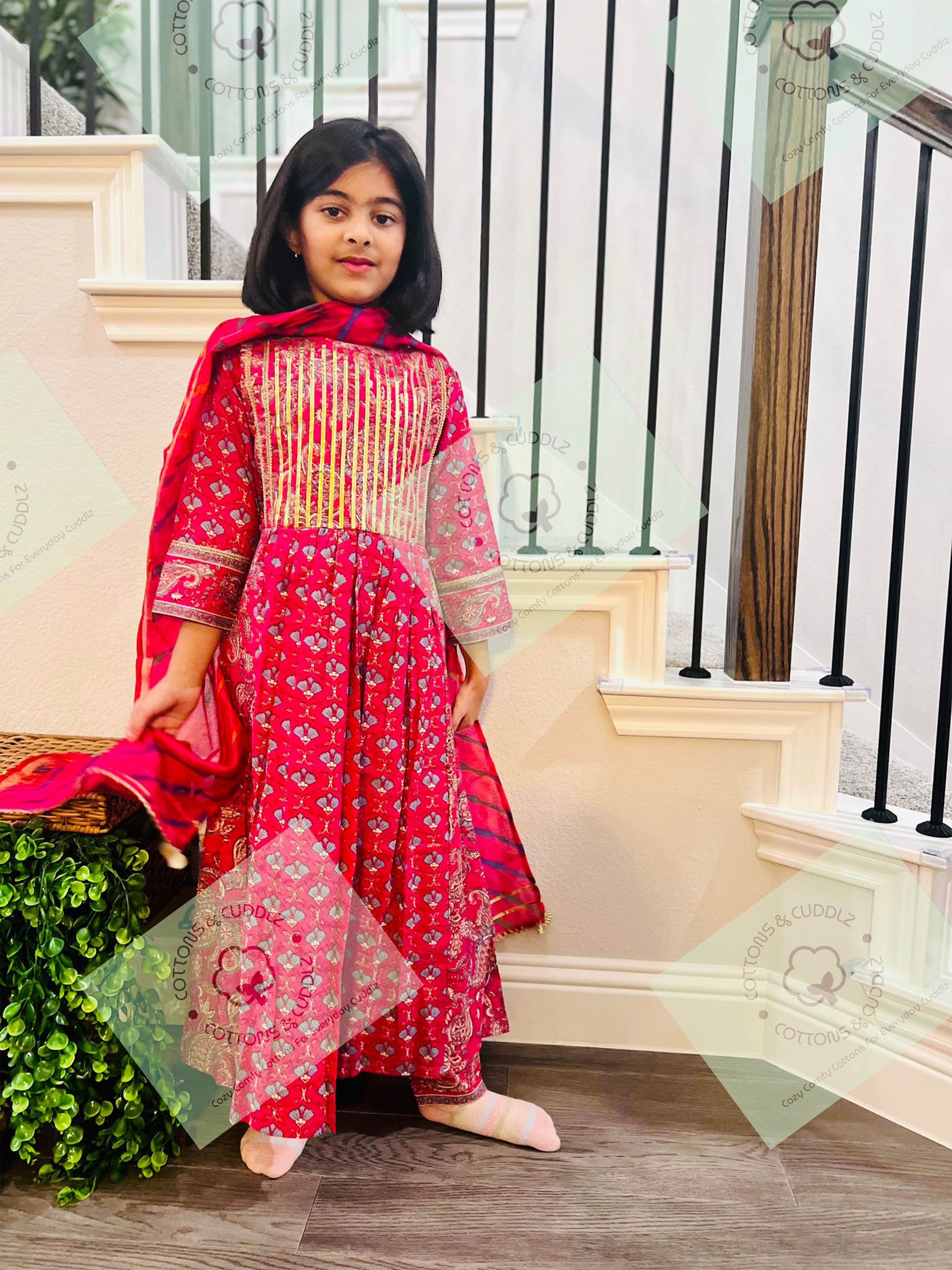 Advait The golden accents on these ethnic outfits add a touch of glamour! My daughter dazzled everyone at the holiday party with her sparkling ensemble.