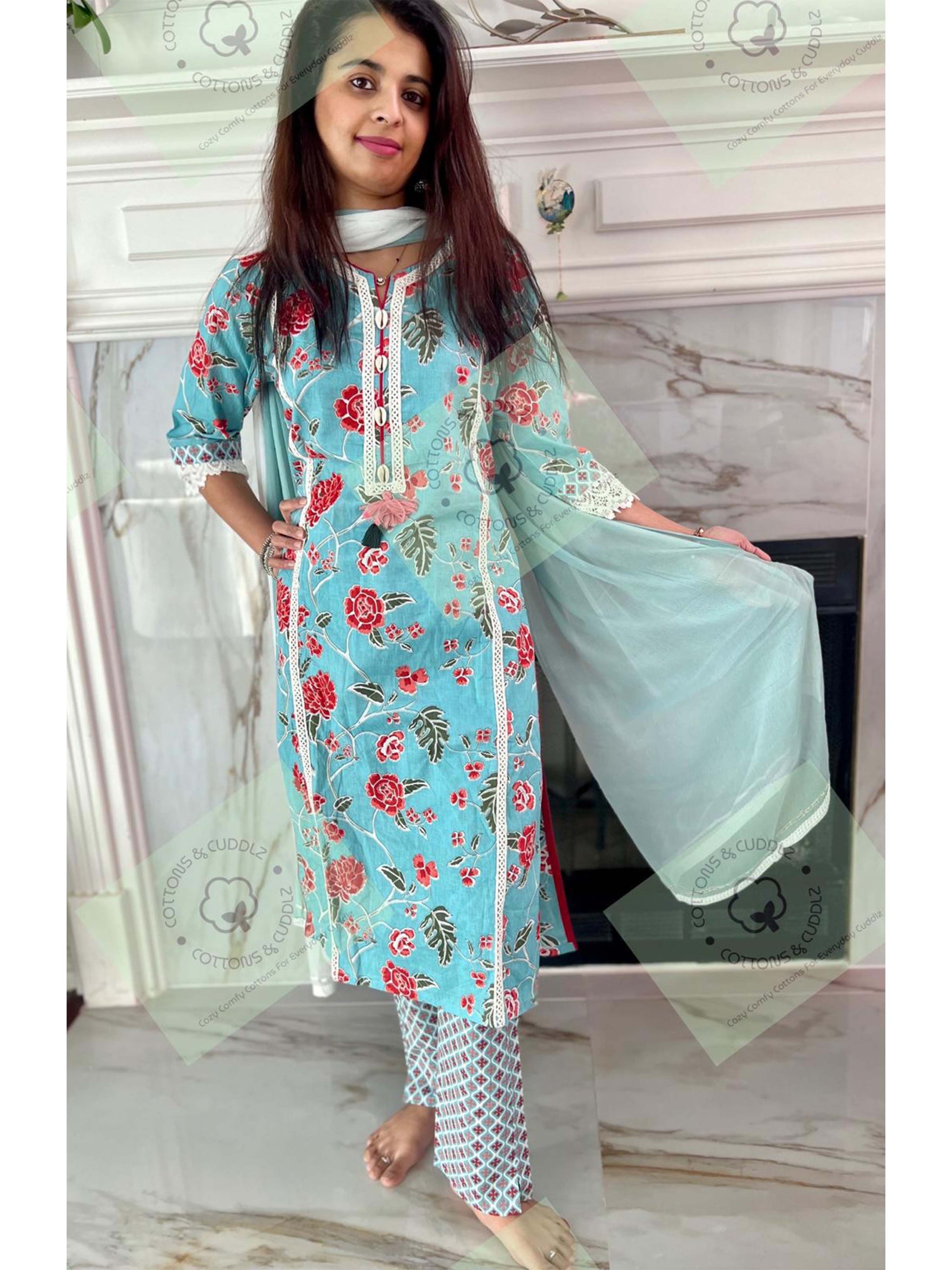 Experience the epitome of comfort and style with our exquisite collection of suit sets for women. Crafted from pure cotton and adorned with intricate block prints, these sets are designed to bring sophistication to every occasion
