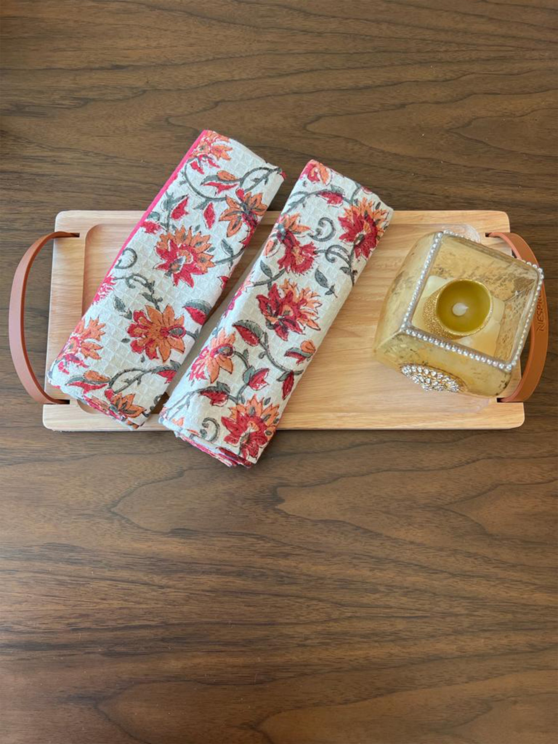 Introducing our exquisite collection of hand towels, meticulously crafted from 100% cotton and adorned with unique block prints. Each set comes in a pair, adding a touch of elegance and charm to your bathroom.
