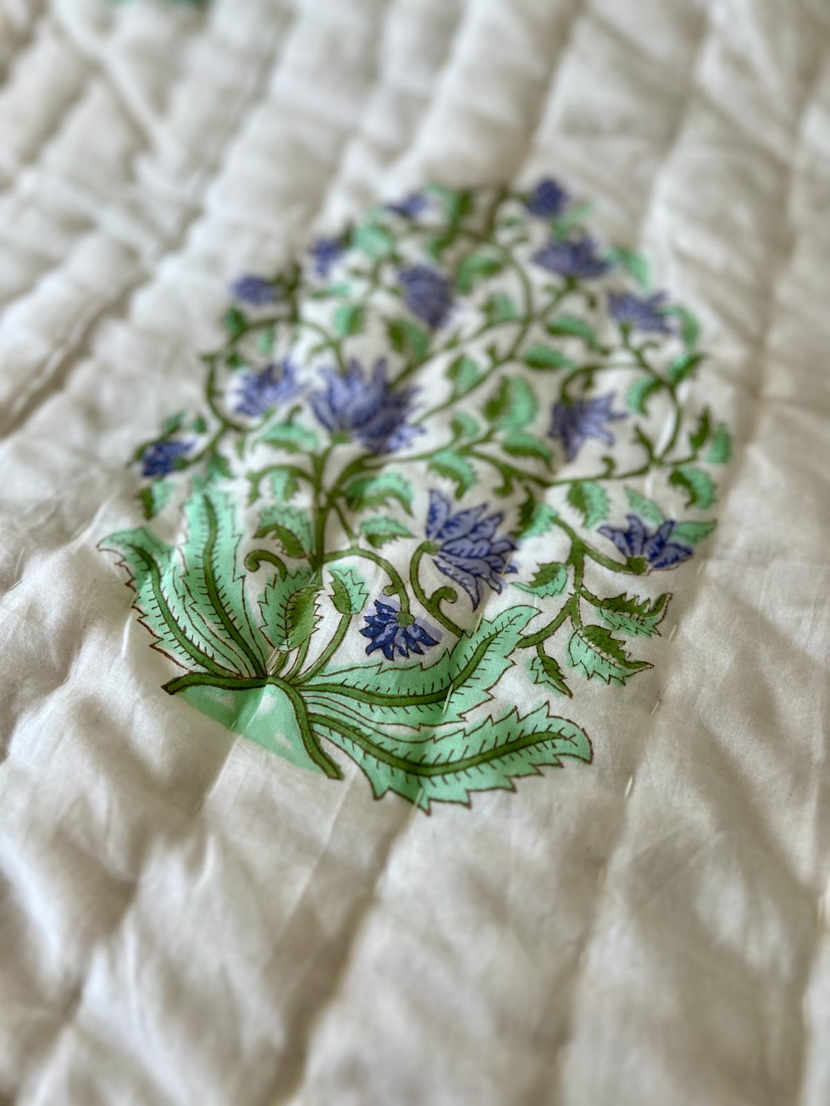 Style your bedroom with our classic hand block printed quilts with beautiful motifs that are made out of the softest cotton. Extra soft sustainable bedding gives you the coziness and luxury of a beautiful night's sleep.